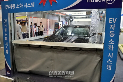 지난 13일부터 15일까지 사흘간 일산 킨텍스에서 개최된 ‘2023 대한민국 안전산업박람회(K-SAFETY EXPO)’에 SG생활안전의 EV자동소화시스템이 전시됐다. 전기차 충전 시 발생하는 리튬이온배터리 화재에 대응, 초기 진압을 위한 솔루션이다. 내열성 방염포로 수조를 형성해 배터리를 침수시키는 방