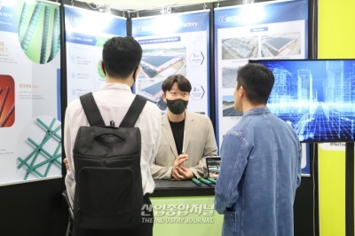 철근보다 가벼우면서도 강한 철근대체제가 ‘넥스트라이즈 2023 서울’에서 참관객들의 눈길을 끌었다. 철근대체제로 사용하는 GFRP(유리 섬유 강화 플라스틱)는 유리섬유와 비닐수지를 8:2 비율로 조합해 제조한다. 무게는 철근의 1/4정도로 가볍고 가격도 저렴하지만 강도는 더 강하다. 녹과 부