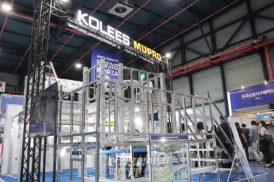 지난 18일 강남 세텍(SETEC)에서 열린 ‘2022 대한민국 기계설비 전시회’ 부스에 조립식 찬넬이 설치돼 있다. 찬넬은 건물 외부나 다리 등에 만드는 보행자용 통로나 배관 지지대, 펜스 설치 등에 활용하는 설비다. 제품을 전시한 코리스이엔티 관계자는 “3방향, 4방향의 브라켓으로 구조물 조립