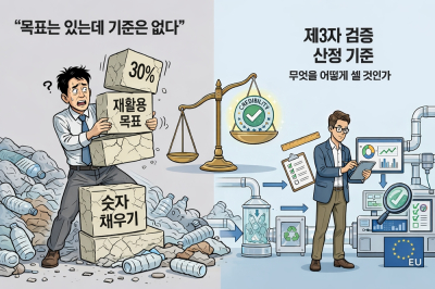 유럽은 숫자를 서두에 내세우지 않는다. 무엇을 셀 것인지부터 다시 묻는다. 이 질문 하나가 지금 재생 플라스틱 정책의 방향을 갈라놓고 있다. 국회입법조사처 보고서를 따라가다 보면 익숙한 불안이 스며든다. 우리는 이미 목표를 정했고 앞으로 나아가고 있다고 믿지만, 정작 그 목표를 지탱할