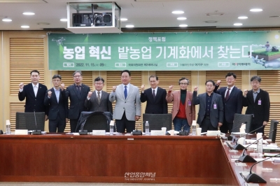 ‘농업혁신 밭농업 기계화에서 찾는다‘ 정책포럼이 15일 여의도 국회의원회관 제2세미나실에서 개최됐다. 더불어민주당 어기구 의원의 주최로 진행됐으며 밭농업 기계 보급화를 위해 각계 전문가가 모여 밭농업 기계화 현황과 기계화 파급효과 및 개선방안을 논의했다. 농촌진흥청 김영근 밭