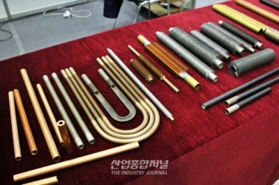 2일 일산 킨텍스(KINTEX)에서 열린 2022 소부장뿌리 기술대전(2022 TECH INSIDE SHOW)에 참가한 별솔금속은 그래핀 소재를 코팅한 다양한 열교환기용 튜브를 선보였다. 그래핀 소재는 열전도율과 경도가 높아 미래 주력 소재로 각광받고 있다. 특히 그래핀 소재를 활용한 이 회사의 튜브는 그래