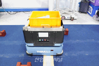 17일 서울 삼성동 코엑스(COEX) A홀 'xEV 트렌드 코리아 2022' 전시장에서는 전기차 관련 제품 등 이차전지 산업군의 제품들을 진열했다. 이날 전시장을 누비는 티라로보틱스의 자율주행로봇 ‘티라봇(THiRA bot)'은 공장 자동화 및 물류창고 자동화 등에 사용하는 자율주행로봇이다. 리튬이온 배터리