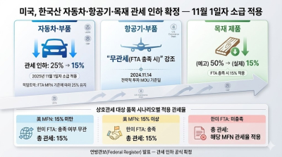 美, 한국산 자동차·항공기·목재 제품 관세 인하 확정… “11월 1일자 소급 적용”