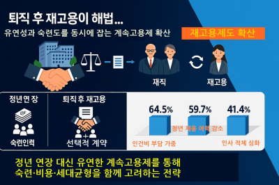 중견기업계가 내놓은 '퇴직 후 재고용' 방안은 단지 고령자 일자리 문제의 임시처방이 아니라, 노동시장 구조와 기업 경쟁력 사이에서 실용적 타협점을 찾으려는 전략적 판단이다. 여기서 말하는 ‘퇴직 후 재고용’이란, 법적으로 정해진 정년(현재는 60세)을 기준으로 일단 근로계약을 종료