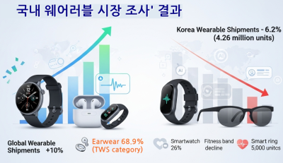 국내 웨어러블 시장이 올 상반기 역성장을 기록했다. 링, 글래스 등 신규 폼팩터가 이끈 글로벌 시장의 두 자릿수 성장세와 대조적으로, 국내 시장은 경기 불확실성과 소비 우선순위 변화의 벽을 넘지 못하고 출하량이 426만 대에 그치며 전년 동기 대비 6.2% 감소했다. 제조사들이 수익성 중