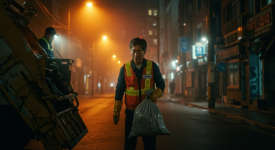 오전 4시. 거리는 아직 잠들어 있었다. 가로등 불빛 아래, 수거차 한 대가 조용히 멈췄다. 그 뒤편에 한 남자가 섰다. 반사조끼를 입고, 장갑을 낀 손으로 쓰레기 봉투를 들었다. 그의 하루는 어둠에서 시작됐다. 누구도 보지 않는 시간, 누구도 기억하지 않는 장면. 쓰레기는 쌓이고, 그