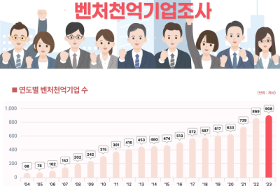 중소벤처기업부와 벤처기업협회는 최근 서울 엘타워에서 ‘2023년도 벤처천억기업 기념식’을 열고 매출 1천억 원을 달성한 기업의 성과를 발표했다. 벤처천억기업은 2023년 기준 908개 사로, 전년 대비 4.5% 증가하며 최초로 900개 사를 돌파했다. 벤처천억기업은 올해 총 33.4만 명을 고용하며