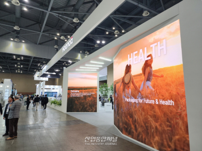 코리아팩 전시회에 참여한 기업 흥아기연의 부스가 참관객들의 발길을 사로잡았다. 대형 LED 디스플레이 장치를 통해 다양한 영상을 제공하고 있는 흥아기연은 고형재와 주사기, 바이알 등 3가지 제품을 각각의 제품 특성에 맞는 패키지 디자인과 친환경 포장재를 적용, 퀄리티 있는 제품이 만