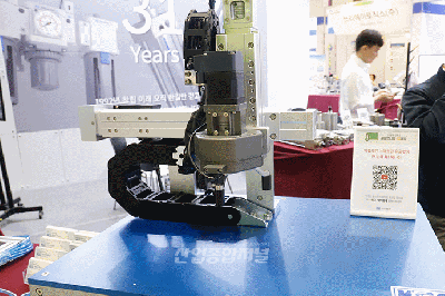 '2023 소재·부품·장비 중소기업 대전(CoMPEX KOREA 2023, 이하 컴펙스 코리아)‘에 전동 실린더가 출품됐다. 해당 제품은 수직·수평 실린더와 그리퍼가 결합된 것이다. 이차전지, 자동화 공정 등에서 수요가 많다. 케이시시정공(주)(KCC) 홍대준 계장은 “공압 실린더는 공기를 이용하다보니 비