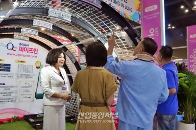 20일부터 사흘간의 일정으로 일산 킨텍스에서 개막한 '2023 여성발명왕엑스포'에 갱도용 터널 유지 구조물이 설치돼 이목을 끌었다. 강관 파이프 유통·가공 업체인 (주)파이프퀸은 이번 전시에서 갱동유지용 강재 지주의 연결 구조(쪼인트바)와 지주간 연결부재(철근철장), 보강 구조물(철선네트