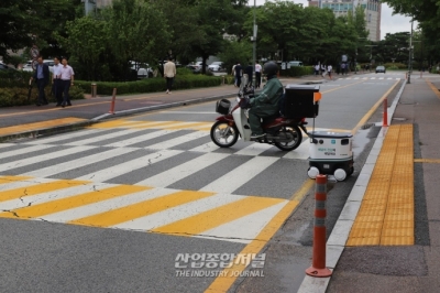 배달 오토바이와 횡단보도 건너는 ‘자율주행 배달로봇’