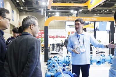 2023 국제물산업박람회(WATER KOREA, 이하 워터코리아)에 참가한 참가기업 관계자들이 마스크 착용에 대한 부담을 내려놓고 참관객에게 다가가 제품을 설명하고 있다. 전시회를 방문한 참관객들 또한 자율적으로 마스크를 착용하지 않거나, 착용한 채로 전시회에서 자유롭게 비즈니스 상담을 나눴다