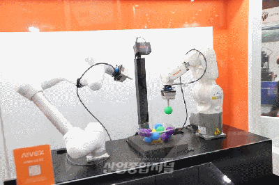 서울 삼성동 코엑스(COEX)에서 4일부터 6일까지 열린 ‘AW 2026 (2026 스마트공장·자동화산업전)’에 쿠카·두산로보틱스 양사의 협동로봇 연동 작업이 시연됐다. ㈜아이벡스(AIVEX)가 마련한 시연은 노코드(No Code) 기반 로봇 통합 제어 플랫폼을 통해 이뤄졌다. 드래그 앤드 드롭 방식으로 로봇
