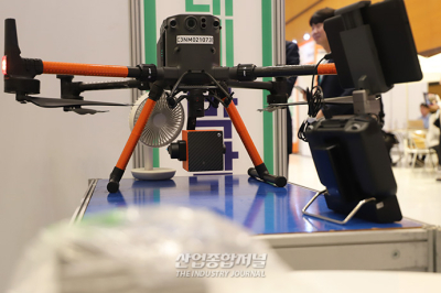 드론에 탑재할 수 있는 방사능 감시 카메라가 19일 삼성동 코엑스에서 열린 ‘2023원전생태계박람회’에 등장했다. 해당 장비는 드론 하부에 장착돼 원거리에서 감마선을 감지, 방사능 여부를 확인할 수 있다. 드론의 광각 카메라 화면에 감지된 감마선을 실시간으로 송출하는 식이다. 현재 의료