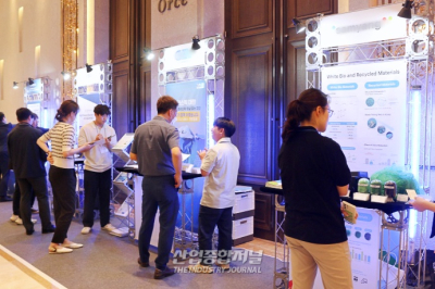 탄소감축 산업에 대한 미래 방향을 제시하는 ‘탄소중립 자원순환 그린플라스틱 국제포럼’이 23일 서울 양재동에서 문을 연 가운데, 부대행사로 각 기업의 친환경 제품 및 기술을 살펴볼 수 있는 전시회가 진행됐다. 그린플라스틱연합 신정희 부장은 “현재 바이오 플라스틱은 성장산업으로, 기업