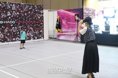 ‘2023 코리아 테마파크&어뮤즈먼트 페어(2023 KOREA THEME PARK&AMUSEMENT FAIR)’에서 어머니와 아들이 가상현실 속에서 에너지 볼을 쏘며 치열한 결투를 벌였다. 피구 경기와 흡사한 ‘하도(HADO)’는 AR 기반의 신개념 생활체육이다. HMD와 손목 센서로 증강현실에서 경기하며, 1:1 개인전부