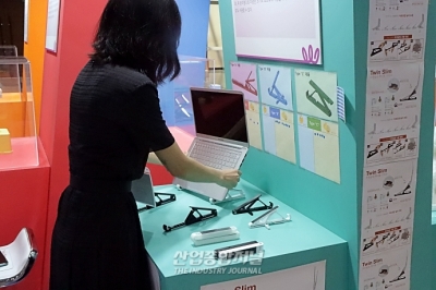 일산 킨텍스에서 20일 개막한 '2023 여성발명왕EXPO(엑스포)'에 생활발명홍보관(이하 홍보관)이 마련됐다. 지난해 특허청의 '생활발명코리아' 사업에 선정된 아이디어로 제작된 시제품들을 볼 수 있다. 홍보관에서 트윈슬림 휴대용 거치대를 전시한 (주)제이엔씨의 이찬호 대표는 "시중 노