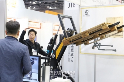 ‘코리아 나라장터 엑스포 2023(KOREA PUBLIC PROCUREMENT EXPO 2023, 이하 전시회)’에서 카트처럼 끌고 다니는 ‘보행식 소형 지게차’가 참관객의 눈길을 끌었다. 김대완 (주)비에스에이 대표는 “지게차를 사거나 렌트하는 비용이 부담스러운 중소‧영세사업장을 위해 개발했다”면서, “전시회
