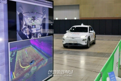 제6회 월드 스마트시티 엑스포(WORLD SMART CITY EXPO KOREA 2022, WSCE)가 열린 일산 킨텍스(KINTEX) 제1전시장에는 관람객을 태운 레벨4 자율주행 차량이 전시홀에 마련된 코스를 주행하고 있다. 업체 관계자는 “이 차량은 현재 수요응답형 자율주행 모빌리티 서비스를 적용했다”면서 “실제 대구