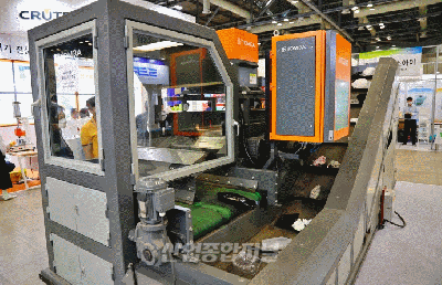 제15회 폐기물·자원순환산업전(Recycling & Environmental Technologies, RETECH 2022)과 2022 한국중장비 전시회(Korea Heavy Equipment Show, KOHES 2022)가 동시 개막한 일산 킨텍스(KINTEX) 제2장시장에는 광학선별기가 플라스틱 분류 과정을 시연하고 있다. 업체 관계자는 “이 제품은 폐플라스틱
