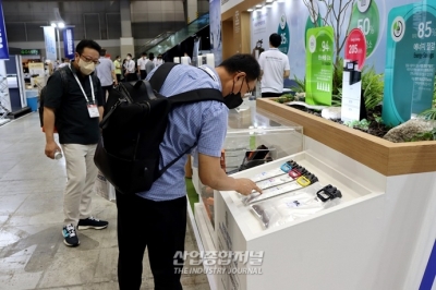 25일 일산 킨텍스에서 열린 ‘K-PRINT 2022’에는 전기신호 방식을 통해 잉크 분사 시 발생하는 분사열을 줄인 잉크젯 프린터가 전시됐다. 전시장에서 만난 관계자는 "기존 레이저 프린터는 원리상 열이 발생할 수밖에 없지만, 잉크젯 프린터는 비교적 열 발생량이 더 적다"고 했다. 전시장에