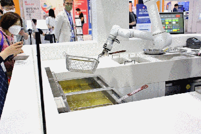 [움짤뉴스] 코엑스서, 튀김 요리하는 ‘로봇암’ 등장