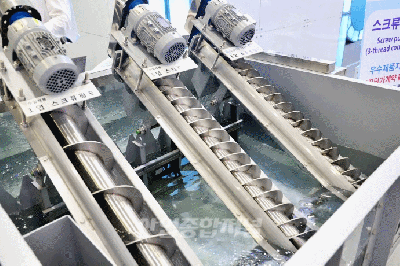 9일 서울 삼성동 코엑스(COEX)에서 진행 중인 제43회 국제환경산업기술&그린에너지전(ENViromental EXhibition 2022, ENVEX)에는 하수처리장 및 중계펌프장에서 하, 오수를 이송시키는 3엽 스크류펌프를 시연하고 있다. 한편, 환경보전협회가 주관한 이번 전시회는 10일까지 진행한다.