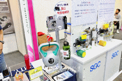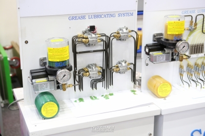 27일 일산 킨텍스(KINTEX)에서 진행 중인 서울국제생산제조기술전(Seoul International Manufacturing Technology Show, SIMTOS 2022)에 참가한 ㈜에스지시가 그리스를 토출시키는 윤활펌프를 선보였다. 이 제품은 펌프 1회 작동에 1회 그리스를 토출시키는 시스템으로, 조절 밸브를 통해 토출량을 설정