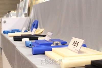 27일 고양시 일산 킨텍스(KINTEX)에서 한국공작기계산업협회 주최로 ‘심토스 2022(생산제조기술 전시회)가 열렸다. 전시장 5홀의 소재부품 및 제어기술관에는 MC나일론, 폴리프로필렌(PP), 아세탈(POM) 등 여러 종류의 합성수지가 전시돼 있다. 합성수지는 석유나 천연가스 등에서 추출한 유기화