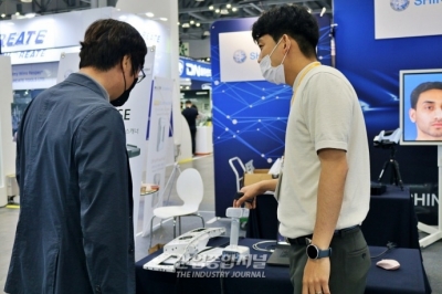 ㈜아이알 로봇이 27일 일산 킨텍스(KINTEX)에서 진행 중인 서울국제생산제조기술전(Seoul International Manufacturing Technology Show, SIMTOS 2022)에서 엑츄에이터 제품을 시연하고 있다. 아이알 로봇 관계자는 “이 제품은 초소형 사이즈로 협소한 공간에 설치가 가능하며, 다양한 에러 현황이 LE