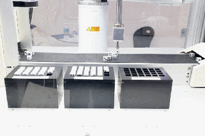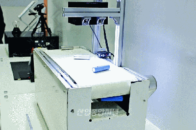 6일 서울 삼성동에서 열린 ‘2022 스마트팩토리·자동화산업전(Smart Factory+Automation World 2022)에 2차 전지 불량 검사기가 스크래치, 찌그러짐 등 전지 외관 상태를 점검하고 있다.