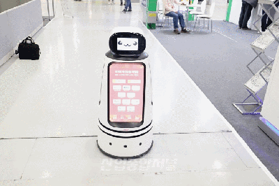 전시 안내를 위한 자율주행 로봇이 6일 서울 삼성동 코엑스(COEX)에서 열린 2022 스마트팩토리·자동화산업전(Smart Factory+Automation World 2022)에 등장했다.