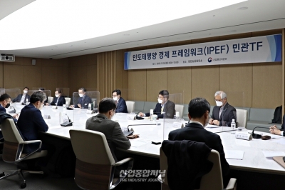 지난해 10월 말, 미국 바이든 대통령이 발표한 새로운 경제 협력구상체 ‘인도태평양 경제 프레임 워크(IPEF)’에 대한 민관 TF의 회의가 29일 서울 대한상공회의소 EC룸에서 개최했다. IPEF는 디지털, 공급망, 청정에너지 등 실물경제의 새로운 통상의제에 대해 역내 포괄적 경제협력을 추구하
