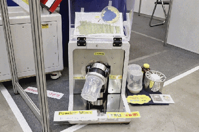 인천 송도 컨벤시아에서 열린 2022 대한민국화학제조산업대전에는 분말 혼합기계가 360도 회전하며 돌고 있다. 이 혼합기계는 보틀 부분 회전과 전체 회전 등 4가지 동작 모션 기술을 접목해 분말 소재를 균일하게 배합할 수 있으며, 제약 및 전자 분야에서 주로 활용하고 있다. 한편, 이번 전시