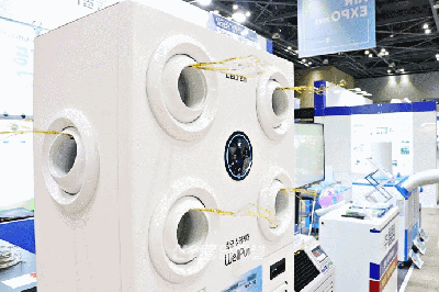 미세먼지 저감과 공기질 개선을 위한 첨단 기술 및 제품 시연이 펼쳐지는 ‘2022 클린에어엑스포(CLEAN AIR EXPO 2022)’ 행사장에 대형 살균 공기 청정기가 등장했다. 대형 공기 청정기 제품을 전시한 냉난방 공조기 제조업체 웰템의 김경배 영업팀 대리는 “필터를 통해 걸러진 공기를 내장된 플라