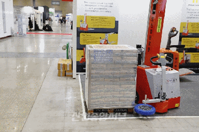 3일부터 6일까지 일산 킨텍스(KINTEX)에서 진행 중인 ‘2022 코리아빌드(KOREA BUILD)’에는 자동 랩핑로봇이 적재물에 랩을 감싸고 있다. 이 로봇은 초음파 센서로 거리를 측정해 작업 구역을 설정할 수 있으며, 작업 진행 시 주변 작업자에게 위험 경고를 알릴 수 있도록 경광등을 점등해 작