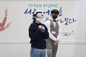 VR HMD(Head Mounted Display)를 착용한 참관객들이 가상세계 안에서 조선시대의 인물을 만나보는 등 문화 체험을 하고 있다. 16일 ‘코리아 메타버스 페스티벌 & K-메타버스 엑스포 2021(KMF & KME 2021)’에서 선보인 이 체험 프로그램은 한국문화재재단이 진행하는 실감 콘텐츠 사업 ‘한성도성 타