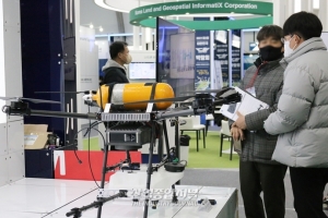 16일부터 서울 여의도공원 문화의 마당에서 진행 중인 ‘2021 제2회 대한민국 드론박람회(Korea Drone Expo 2021)’에 수소 탱크를 장착한 드론이 등장했다. 공공분야 교육용 드론을 선보인 한국교통안전공단의 박재현 연구원은 “수소 연료의 지속 시간은 리튬 배터리에 비해 약 4배 더 길다”