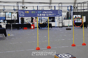 ‘2021 제2회 대한민국 드론박람회(KOREA DRONE EXPO 2021)’의 드론 체험장에서 축구공 모양의 드론을 활용한 ‘드론축구’를 한창이다. 행사를 소개한 대한드론축구협회 안흥진 전북지회장은 “드론축구는 축구공 형태의 드론을 조종해 상대 진영 골대에 넣는 방식으로 이뤄진다”고 말했다.