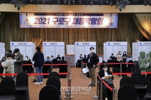 '2021 구로구 일자리 박람회'에 참가한 다양한 기업과 연령층의 취업 희망자들이 현장 면접을 진행했다. 23일 서울 구로구 테크노마트에서 진행한 이번 행사에는 이미지 메이킹, 지문적성검사 등 구직자에게 필요한 서비스를 제공했다. 한편, 구로구청이 주최한 이번 박람회는 서비스, 의료
