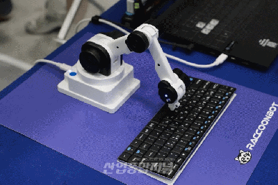 서울 코엑스(COEX)에서 13일부터 15일까지 개최하는 ‘2025 에듀플러스위크 미래교육박람회’에 AI(인공지능) 로봇 교육용 초소형 협동로봇이 등장했다. 에듀테크 전문기업 로보메이션이 출품한 ‘라쿤봇’은 학생들이 협동로봇의 원리를 이해할 수 있도록 제작됐다. PC와 무선으로 연결해 코딩 실