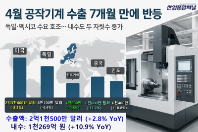 글로벌 투자 위축과 대외환경 불확실성에도 불구하고, 4월 공작기계 시장이 7개월 만에 전년 동월 대비 성장세를 나타냈다. 독일과 멕시코 등 주요국 수출 증가가 회복세를 이끌었다. 한국공작기계산업협회에 따르면, 4월 공작기계 수주는 2천883억 원으로 전년 동월보다 4.9% 확대됐다. 내수