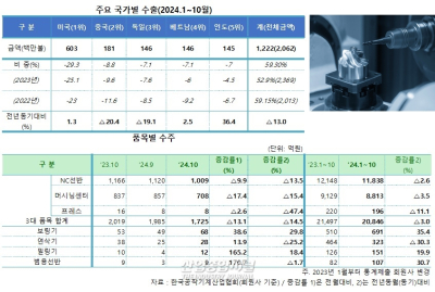 지난해 10월 공작기계 시장은 글로벌 경제 불확실성과 주요국 통상정책 변화의 영향을 받아 전반적으로 위축된 모습을 보였다. 특히 미국 대선과 국제 정세로 인한 불안감이 주요 변수로 작용하며, 국내외 수출 및 생산 실적이 모두 감소세를 기록했다. 국내 공작기계 시장의 수주, 생산, 수