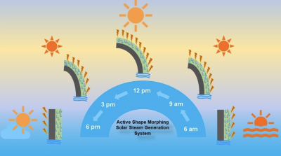국내 연구진이 4D 프린팅과 하이드로겔을 결합한 태양열 증기 발전 시스템 설계법을 개발해 물과 에너지 문제 해결에 새로운 가능성을 열었다. 한국연구재단(이사장 이광복)은 이원오 전남대학교 교수 연구팀이 하이드로겔과 4D 프린팅 기술을 융합해 태양열을 활용한 효율적인 증기 발전 시스템을