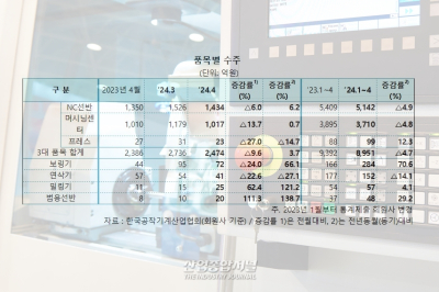 국내 공작기계 시장이 대내외 악재로 인해 주춤한 모양새다. 지난 4월 공작기계 시장은 이스라엘-이란 분쟁, 홍해 사태 장기화 등으로 인해 유가, 환율, 물류비 등이 높은 변동성을 보이며, 수주, 생산, 수출 실적이 전년 동월 대비 모두 감소했다. 한국 공작기계산업협회에 따르면 4월 공작기계 수